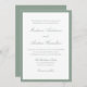 Create a soft, romantic first impression with this sage green wedding invitation, accented by a muted green border that brings a natural, botanical feel to the design. The couple’s names are showcased in graceful calligraphy, followed by neatly arranged wedding details in classic serif lettering. Ideal for garden weddings, outdoor ceremonies, and nature-inspired celebrations, this colorway offers a calm, sophisticated look with an organic touch.
