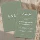 A modern, minimalist wedding invitation card in sage green tone with a clean and elegant design. The card features subtle thin frames on both sides. Both side includes the couple’s monogram, which can be easily removed or customized if needed. The black background and simple layout give it a timeless, stylish, and sophisticated look, perfect for a modern wedding.