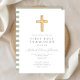 Invitación Modern Sage Green Stripes Cruza Primera Comunión