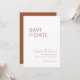 Boda minimalista Guarda La Fecha. Fácil de editar Guardar la plantilla de fecha. Terracota marrón y colores blancos. Para realizar cambios avanzados, seleccione la opción "Hacer clic para más personalizares" en Personalizar esta plantilla.
