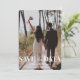 Anuncie su fecha de boda a los huéspedes con estas modernas tarjetas Save the Date. Con una foto vertical de sangre completa, una tipografía elegante y una espalda verde oscura, exudan la elegancia contemporánea. Personalizar los colores, las formas de papel y los tamaños para que se adapten a su estilo y al tema boda. Utilice nuestra herramienta de diseño para realizar más modificaciones si es necesario. Para cualquier ayuda, envíenos un mensaje en cualquier momento!