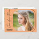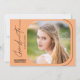 Esta moderna invitación para graduación de guiones incluye texto estilo escritura a mano y una foto cuadrada con esquinas redondeadas sobre un fondo naranja claro. El reverso ofrece una segunda foto vertical y un texto personalizado para que añada los detalles de la invitación a la fiesta.
