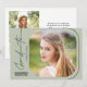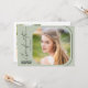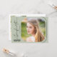 Esta moderna invitación a la fiesta de graduación de guiones incluye texto estilo escritura a mano y una foto cuadrada con esquinas redondeadas sobre un fondo verde de sabio claro. El reverso ofrece una segunda foto vertical y un texto personalizado para que añada los detalles de la invitación a la fiesta.