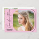 Esta moderna invitación para graduación de guiones incluye texto estilo escritura a mano y una foto cuadrada con esquinas redondeadas en un fondo rosa claro. El reverso ofrece una segunda foto vertical y un texto personalizado para que añada los detalles de la invitación a la fiesta.