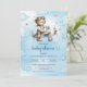 Invitación Modern Teddy Bear Pilot Blue Brown Boy Shower