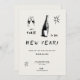 Celebrate New Year with a stunning handwriting black and white modern bold typography invitation with a champaign bottle and glasses to toast to the new year. Change time, address, number and name.