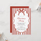 Modern Whimsical Bow Illustrated Christmas Party Invitation featuring red and white stripes, script typography, all wrapped up in a red bow. The perfect invitation for your company or family Christmas party!