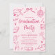 Invitación Modern Whimsical Hand Drawn Pink Graduation Party