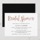 Esta moderna y fresca invitación a la ducha de novias incluye un moderno guión manuscrito en rosa falso de oro y un aspecto en moda, blanco y negro con una rica espalda negra.