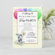 Invitación alegre y moderna a fiesta de té para celebrar estar libre de deudas (o quema de hipoteca, inauguración de casa, cumpleaños, ¡cualquier cosa!). La invitación cuenta con globos, taza de té acuarela, texto en letra script y globos y mensaje final en el reverso.