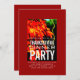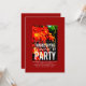 INVITACIÓN MODERNA A LA CENA CON COLOR DE FONDO ROJO. Audaz foto de hojas de otoño rojas profundas sobre un fondo sólido con texto blanco moderno. ELKE CLARKE©