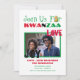 Agrega tu propia foto a esta invitación moderna para una fiesta de Kwanzaa. Esta invitación cuenta con fuentes modernas y de moda en rojo, verde y negro y una mazorca de maíz. ¿Puedes encontrarla? En el reverso se encuentran los siete principios de Kwanzaa y 7 velas. Fácil de editar con solo 2 campos de plantilla de texto. ¡Muchos más suministros para fiestas de Kwanzaa en la colección de fiestas de Kwanzaa de esta tienda! ¡Feliz Kwanzaa!