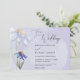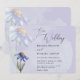 Las invitaciones de bodas modernas de los partidos temáticos incluyen daisies de Gerbera morado-azul y tipografía de escritura moderna, emparejada con letras serif tradicionales. El diseño se basa en la combinación de acuarela color púrpura y azul pálido con un fondo de lavanda pastel. #Boda #SpringWedding #ModernWedding