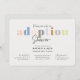 Un diseño único para la neutralidad de género, con letra negrita en colores sutiles modernos, el encabezado dice "Ducha de adopción", al revés el diseño está terminado con un fondo gris claro si necesitas otro color en la parte posterior para que coincida con tu tema, se puede cambiar pulsando más en el personalizar". Si necesitas ayuda, por favor avíseme. Personalice la plantilla delante y atrás.