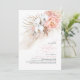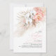 Invitaciones de bautizo con orquídeas blancas, rosas rosadas, follaje tropical seco y hierba de pampas elegantes acuarelas