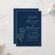 Elevar a su boda con esta invitación azul marino y plateado, con elegantes toques de rosa floral. Con un fondo marino oscuro y elegantes detalles plateados, este diseño desprende un encanto atemporal, perfecto para una moda y una celebración romántica. Personaliza para un toque único en tu día especial.