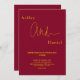Esta elegante invitación a la boda de Borgoña y de oro es perfecta para un boda moderno. el diseño es sobrio y elegante, con una caligrafía dorada sobre un fondo burdeos.