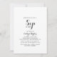 Este moderno sorbo de caligrafía formal y la invitación a ver es perfecto para una simple reunión con la celebración del recién nacido. El diseño presenta una bonita fuente en un fondo blanco para embellecer tu evento.