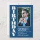 Invite a sus amigos y seres queridos con este azul moderno con la invitación de la fiesta de cumpleaños de fotos del personalizado de texto blanco. El texto se puede personalizar para cualquier edad.