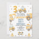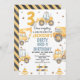Invitación de cumpleaños 3 días sucia de la moderna construcción amarilla para niños con varios vehículos de construcción como camiones de volquete y excavadoras, así como un gran número de edad amarilla.