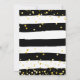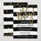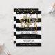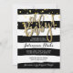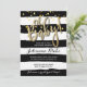Tendencias, esta invitación presenta un fondo a rayas de acuarela en blanco y negro y letras y confeti dorados que caen en el fondo.