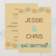 Anuncio de boda e invitación a recepción o fiesta posterior a la boda con diseño moderno y texto personalizado. Si ya está casado, se escapó o tuvo una boda en destino o una ceremonia en el juzgado y está teniendo una fiesta de celebración de boda más tarde, personalice esta invitación de diseño moderno de mediados de siglo para su evento. Tonos sutiles de aqua y naranja con círculos superpuestos.