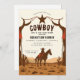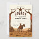 Perfecto para un cumpleaños de temática occidental, una ducha de bebé o una celebración, esta invitación combina el encanto rústico del vaquero con elementos de diseño limpios y modernos. Con tipografía minimalista, motivos occidentales como botas, gorras y herraduras, y una paleta de colores neutros o terrenales, es la manera ideal de recibir a los huéspedes en su evento inspirado en el Lejano Oeste. Personalice con sus detalles del evento para una celebración verdaderamente única.