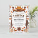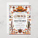 Perfecto para un cumpleaños de temática occidental, una ducha de bebé o una celebración, esta invitación combina el encanto rústico del vaquero con elementos de diseño limpios y modernos. Con tipografía minimalista, motivos occidentales como botas, gorras y herraduras, y una paleta de colores neutros o terrenales, es la manera ideal de recibir a los huéspedes en su evento inspirado en el Lejano Oeste. Personalice con sus detalles del evento para una celebración verdaderamente única.
