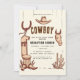 Perfecto para un cumpleaños de temática occidental, una ducha de bebé o una celebración, esta invitación combina el encanto rústico del vaquero con elementos de diseño limpios y modernos. Con tipografía minimalista, motivos occidentales como botas, gorras y herraduras, y una paleta de colores neutros o terrenales, es la manera ideal de recibir a los huéspedes en su evento inspirado en el Lejano Oeste. Personalice con sus detalles del evento para una celebración verdaderamente única.