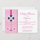 Moderno Anchor Náutico Baby Shower Invitation con un ancla azul y rosa sobre fondo de rayas rosas y blancas. Perfecto para un bebé. ducha de bebé chica. Visite nuestra tienda para ver nuestra amplia selección de ninos náuticos en velero. invitaciones para ducha. ©diseños de hojas negras
