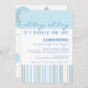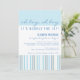 Un diseño contemporáneo para un contemporáneo Mamá-a-es. ¡La coordinación de modelos de rayas y de círculos sutiles en azul en colores pastel, trullo y crema hace una invitación moderna a una fiesta de bienvenida al bebé cuando va a ser la alegría doble - muchachos gemelos!