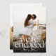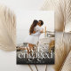 Tarjeta de invitación de compromiso moderno con tipografía minimalista moderna y dos de sus fotos favoritas.