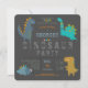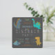 Esta invitación de cumpleaños de dinosaurio súper linda presenta una selección de los dinosaurios más lindos, incluyendo un par de T-rex, un Brontasurus y un triceratops, en una paleta de gris de buque de guerra, mostaza y azul turquesa. Agrega tus propias palabras a este diseño utilizando las casillas "Editar esta plantilla de diseño" en el lado derecho del artículo, o haz clic en el botón azul "Personalizar" para agregar tu texto personalizado, puedes cambiar fácilmente las fuentes y los colores de fuente si lo deseas. Elige entre doce tipos de papel únicos, dos opciones de impresión y tres opciones de forma para diseñar una invitación de cumpleaños tan única como tú. © Julie McIver