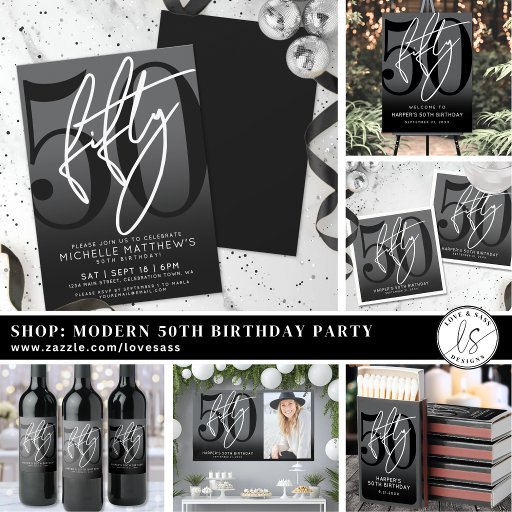 Fifty Years Simple Black White 50th Birthday PartyDiseñado por Jo P.