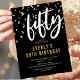 Deslumbra a tus invitados incluso antes de que comience la celebración con nuestras elegantes y modernas invitaciones de cumpleaños número 50. Con un fondo negro chic, confeti blanco y dorado brillante, y un script en negrita 'cincuenta', estas invitaciones ofrecen un toque de elegancia y alegría festiva. Su plantilla de texto fácil de usar hace que la personalización sea muy sencilla, lo que garantiza que tus invitaciones sean tan únicas como tu evento trascendental.