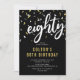 Invitación moderna de cumpleaños número 80 en negr