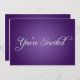 Esta invitación moderna de fiesta morada es perfecta para cualquier ocasión. Cuenta con un gradiente radial negro en la parte delantera con una fuente escrita con estilo que dice "Estás Invitado". ¡Perfecta para eventos corporativos o fiestas de cóctel! Todo el texto en la parte posterior es totalmente personalizable. ¡Agrega los detalles de tu fiesta!
