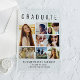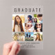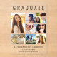 Elegante y clara invitación de graduación acrílica para celebrar el graduado que presenta "GRADUATE" en la cima de la tipografía grande, un collage de siete fotos y su nombre, año de clase y escuela en tipografía moderna.