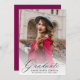 Diseño de letras caligráficas y foto personalizado. Este diseño de la tarjeta de graduación tiene invitación en la parte delantera y la invitación de la fiesta de graduación en la parte trasera. Puedes cambiar la foto y otros detalles.