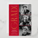 Elegante invitación de graduación con las tres fotos del graduado ubicadas a la derecha del diseño en un diseño vertical. El "Grad" se exhibe con letras de arte deco de Relieve metalizado dorado con un fondo rojo. Personalice la moderna invitación de graduación fotográfica añadiendo el nombre del graduado, el año de graduación y el nombre de la escuela. El diseño se invierte para mostrar un fondo geométrico rojo y blanco. ¡Perfecto tanto para graduados de secundaria como universitarios!