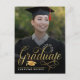 ¡Anuncien su graduación a la familia y amigos con estas postales de moda para la invitación de graduación! Esta moderna y elegante invitación de graduación incluye un hermoso texto de escritura dorada que explica la palabra graduación con una plantilla de texto para personalizar con el nombre, la escuela y el año de graduación. Agregue un mensaje adicional o haga clic en '' personalizar más adelante''para editar esta plantilla.