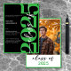 Moderna y mínima, esta invitación de graduación hace una declaración combinando el clásico blanco y negro con acentos de verde limón. Su diseño mínimo es un diseño simple y divertido para celebrar el gran evento del graduado. La parte trasera muestra la foto favorita de tu graduado. Creado por Simply Farmhouse Press.