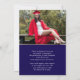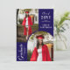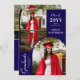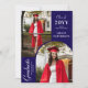 La Invitación de graduación moderna de Photo Blue White incluye tres de tus fotos favoritas de tu graduado, con el año de clase del graduado, el nombre de los graduados y la escuela, universidad o universidad, grado, calificación o planes futuros, con el rápido y moderno guión de caligrafía blanca "Graduado". Al contrario, añada su mensaje personalizado. Sencillo, elegante y elegante. Creado por ©2025 Evco Studio www.zazzle.com/store/evcostudio