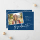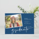 Este fondo azul marino de colores completos presenta una foto rotada de tu graduado en su día de graduación o de sus retratos de llamadas principales. Coincidir Colocar en la parte posterior de la tarjeta. Para obtener información sobre cambios de diseño personalizados por parte del diseñador independiente, envíe un correo electrónico a paula@labellarue.com ANTES de que el personalizar realice un pedido. // Magnífico crédito por Conner Ching en Unsplash