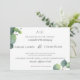El eucalipto verde minimalista moderno de la acuarela sale de la invitación del boda. Personalice el texto, el estilo de fuente, el color y el tamaño.