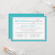 Invitaciones solo para recepción con un diseño de tipografía moderna turquesa y gris y un borde turquesa y gris para su celebración post-boda. La parte trasera es un turquesa sólido.