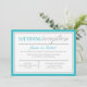 Invitaciones solo para recepción con un diseño moderno de tipografía turquesa y gris y un borde turquesa y gris para la celebración posterior a la boda. La parte posterior es un turquesa sólido.