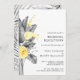 Esta invitación de recepción de boda tropical moderna es perfecta para su boda de destino boho de verano. Diseñada con clásicas flores amarillas elegantes que sobresalen de la vegetación costera gris, incluyendo hoja de palma y helecho. Con todas estas flores coloridas de acuarela y hojas grises, seguro que tendrá el ambiente bohemio de playa que busca.