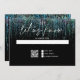 RSVP abstracto moderno - Una guirnalda atrevida y moderna de color teal brillante y centelleante cae en cascada por la página, en caligrafía manuscrita está "házselo saber" - las iniciales de la pareja en la parte superior - el resto del texto es simple y limpio - todo sobre un fondo negro. Papelería de boda elegante.