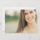 Con dos fotos de tu graduado, una en la parte delantera y la trasera, el estilo audaz de este diseño es perfecto para un grado moderno. La "estampilla" redonda en la parte superior derecha es fácilmente personalizada con el año de graduación y todos los detalles de la invitación / fiesta están en la parte delantera. Recuerda a una antigua postal, este diseño es contemporáneo y único, al igual que tu graduado.